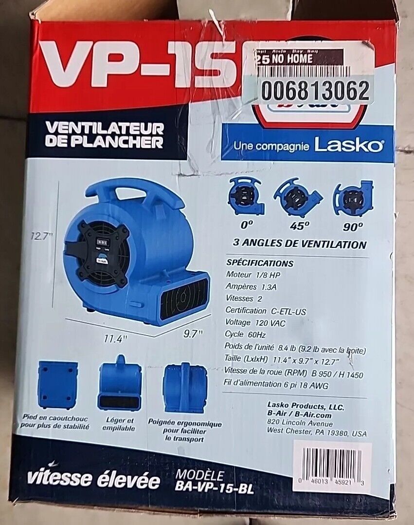 B-Air VP-15 1/8HP Air Mover Carpet Dryer Floor Blower Fan for Flood Restoration