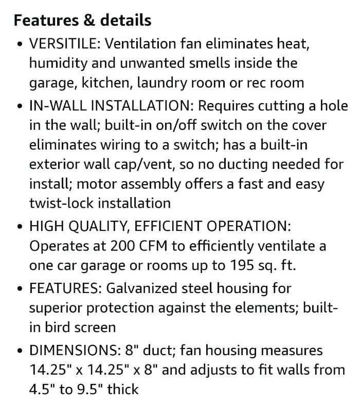 Features: Broan 509S 180 CFM 6.5 Sone Wall Mounted HVI