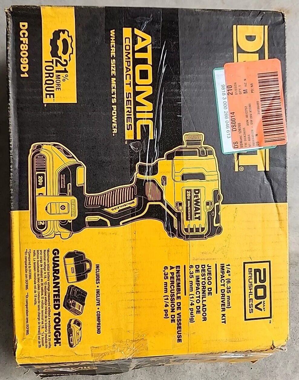 DEWALT ATOMIC 20V 1/4" Cordless Brushless Compact Impact Driver Kit DCF809D1