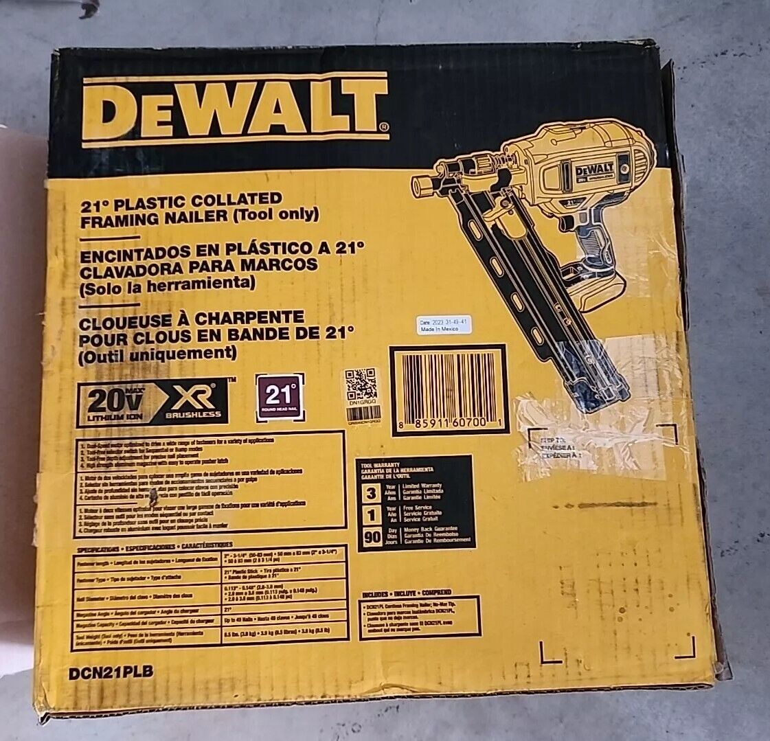 DEWALT DCN21PLB 20V 21-Degree Cordless Framing Nailer - Warranty & Free Shipping