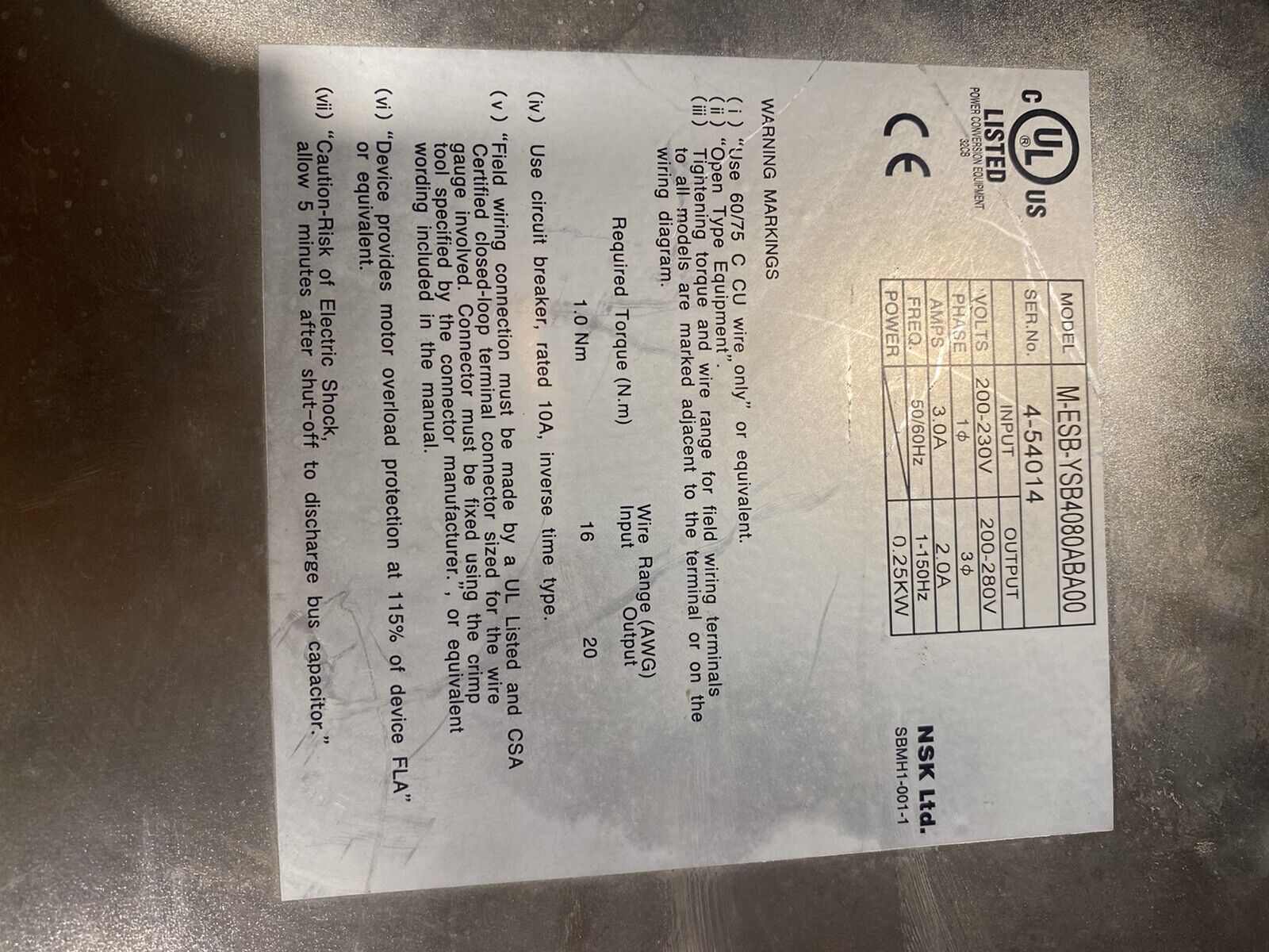 Used NSK ESB-YSB2020AA3F4-00.1 Servo Driver w/ warranty
